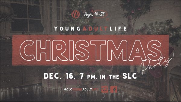 Give Mission Trip Giving My Account + My Account My User Account My Groups My Events My Mission Trips My Purchase History My Giving My Contribution Statement Show Summary (0) anonymous Login Event Details YoungAdultLife Gathering (18-29 years old): Christmas Party Back to Calendar YoungAdultLife Gatherings YoungAdultLife Gatherings are on 1st and 3rd Tuesdays from 7 - 9 pm. Come for a time of worship, a powerful message, and a time to hang out in community! Invite a friend! No childcare provided. These Gatherings are designed for connection and community, featuring worship, teaching, and an overall amazing time together (usually with food!). It’s a great way to make our large church feel more personal by connecting with others around the same stage of life (18–29 years old), while growing stronger in our walk with Jesus through meaningful relationships and authentic community. Stay in the Loop The best way to stay connected? Join our GroupMe! We use it to share event details, hangout opportunities, and keep all communication in one place. Can’t Attend in Person? We know life takes people in different directions—whether you’re busy, traveling, or away for school. That’s why we live-stream almost all of our Gatherings on Instagram @clcyoungadultlife, so you can still be part of what’s happening. You can also watch past Gatherings anytime to see what they’re like or catch up if you missed one! Ministry Area: YoungAdultLife When: Tuesday, December 16, 20257:00 PM - 8:30 PM Add To Calendar Where: Little York Campus3489 Little York RdDayton, OH 45414-1764 Map This Meeting Instructions: Who Is This For? If you’re between 18 and 29, you are welcome here! Whether you attend CLC regularly, go to a different church, or don’t go to church at all, this is a space for young adults in Dayton and the surrounding areas to connect, grow, and build community together. Have a QUESTION about this group? Please send us a DM on Instagram. Ready to SIGN UP for this group? Please REGISTER below (not required to be a part of the group). We meet in the StudentLife Center of Christian Life Center (3489 Little York Rd, Dayton). Contact: Hutcheson, Mars Registration Not Available